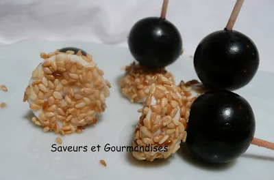 En cette veille de week-end, je vous propose une entrée express aussi jolie que savoureuse : des bouchées de mozzarella aux raisins, parfumées et croquantes à souhait.